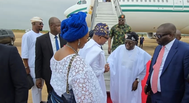 President Bola Tinubu’s recent arrival at Gateway International Airport in Ogun State marked a pivotal moment as he journeys to honor the memory of the late Awujale, Oba Sikiru Adetona, at the eighth-day prayer ceremony. Governor Dapo Abiodun, alongside Governor AbdulRahman AbdulRazaq and fellow South-West leaders, formed the frontline reception committee, symbolizing both political and cultural solidarity.